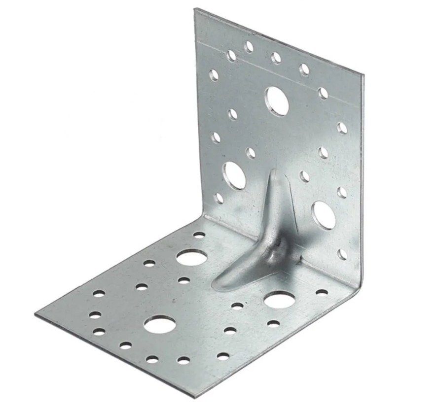 Назначение: обладает широкой сферой применения, применяется в строительстве в конструктивных элементах: каркасные дома, каркасы легких строений и садовых конструкций. Усиленные уголки применяются в узлах с повышенной нагрузкой на изгиб. Соединяет стропила, балки и стойки под углом в 90°. Роль усилительного элемента играет грань, вогнутая во внутрь уголка.