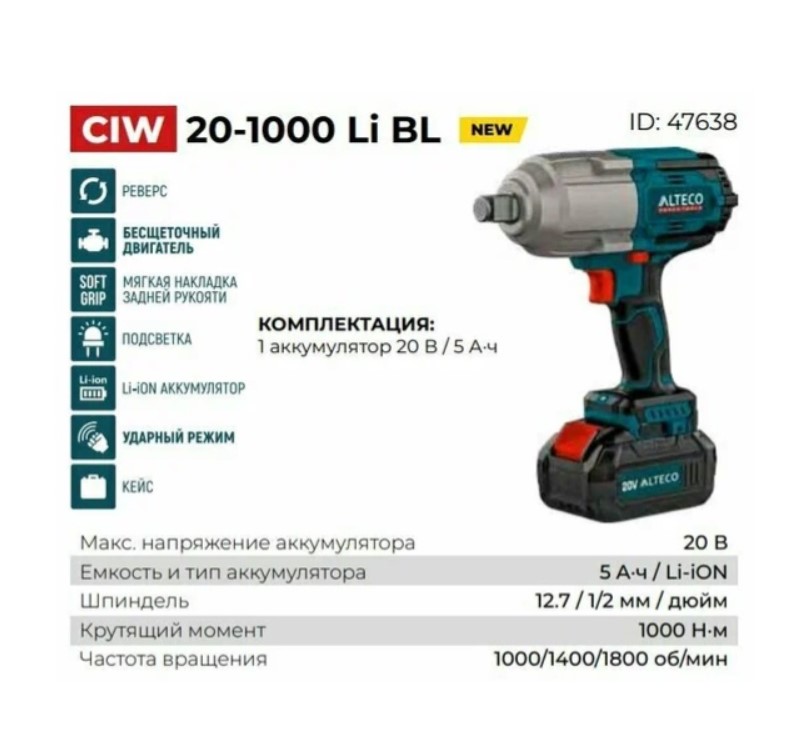 Гайковерт ударный аккумуляторный ALTECO CIW 20-1000 Li BL