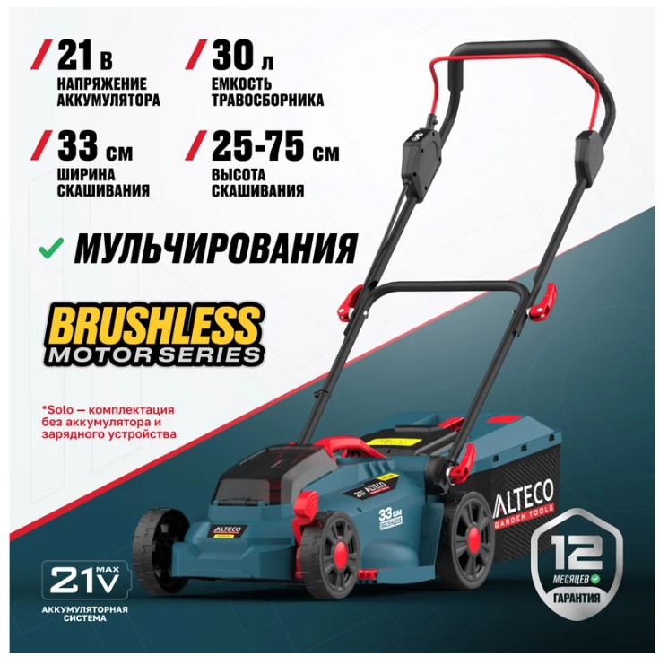 Газонокосилка аккумуляторная бесщеточная ALTECO CLM 21-33 BL Solo