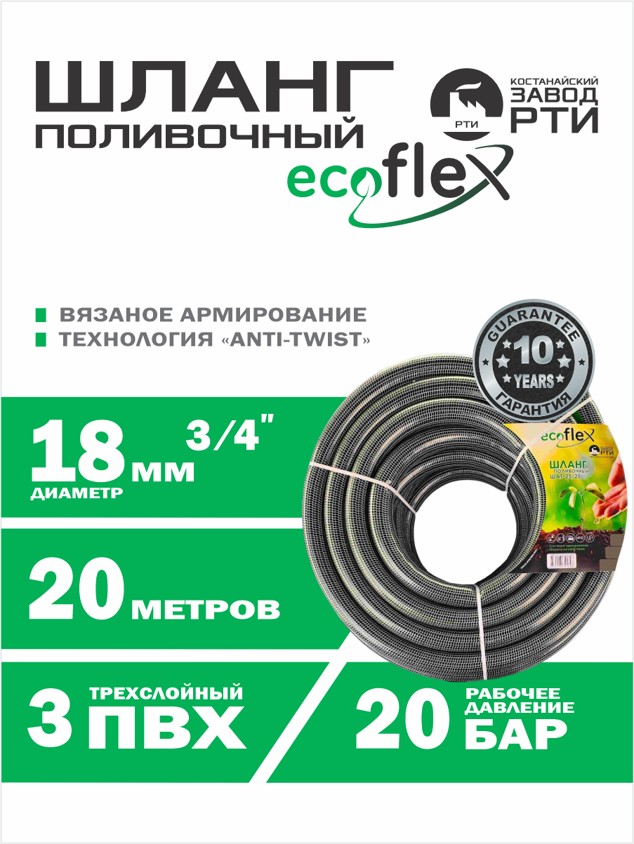 Шланг поливочный "EcoFlex" TT ШАТ -15/18, (d.18мм, 15 метров)