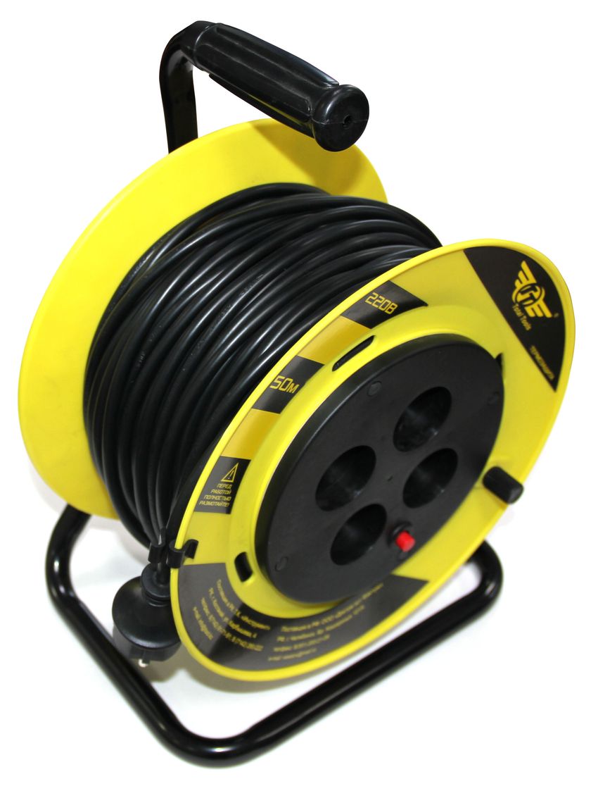 Удленитель электрический на катушке. Имеет сечение проводников 1,5 мм.кв. и позволяет подключать нагрузку мощностью до 5 кВТ. Назначение: применяется для подключения электрических приборов к сети