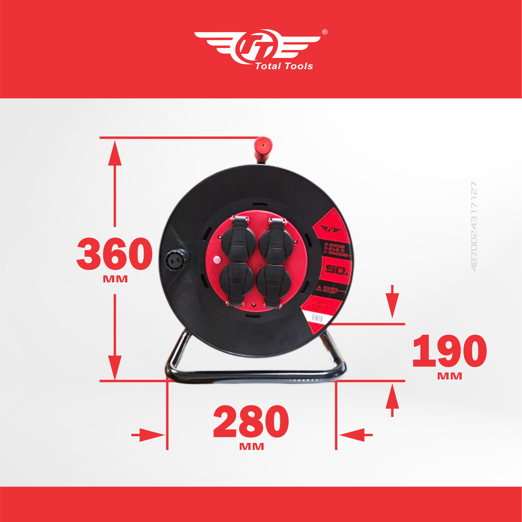 Удлинитель электрический 50 м 4 розетки TT