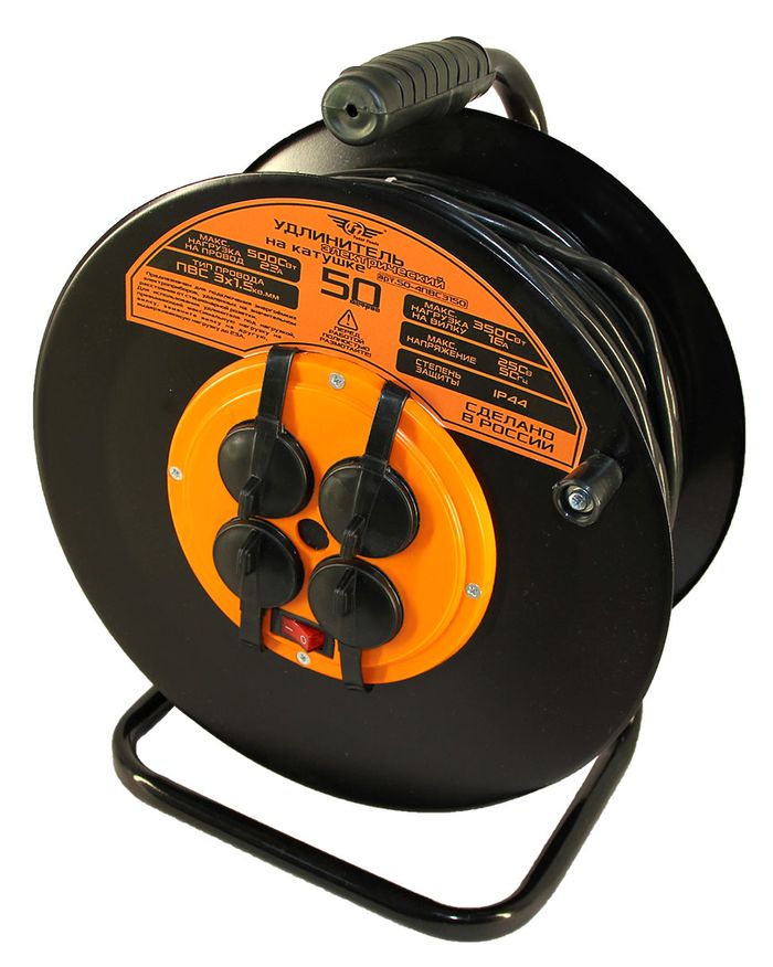 Удленители электрические российского производства. Предназначен для подключения электрических приборов к сети. Имеет металлическую катушку.