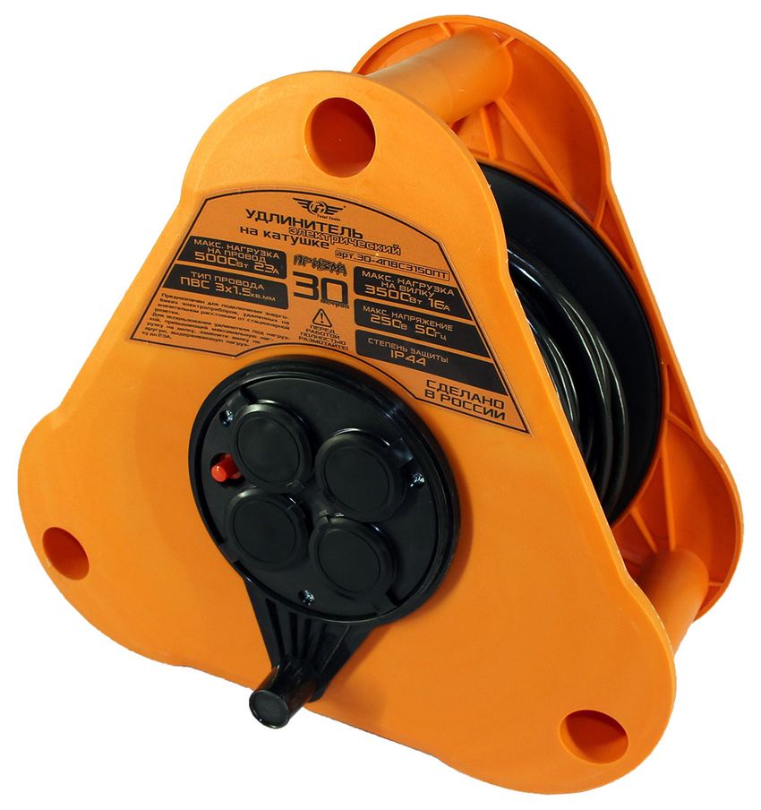 Удлинитель электрический 30 м 4 роз. ТТ "Призма" ПВС 3х1,5 IP44 катушка пластм.