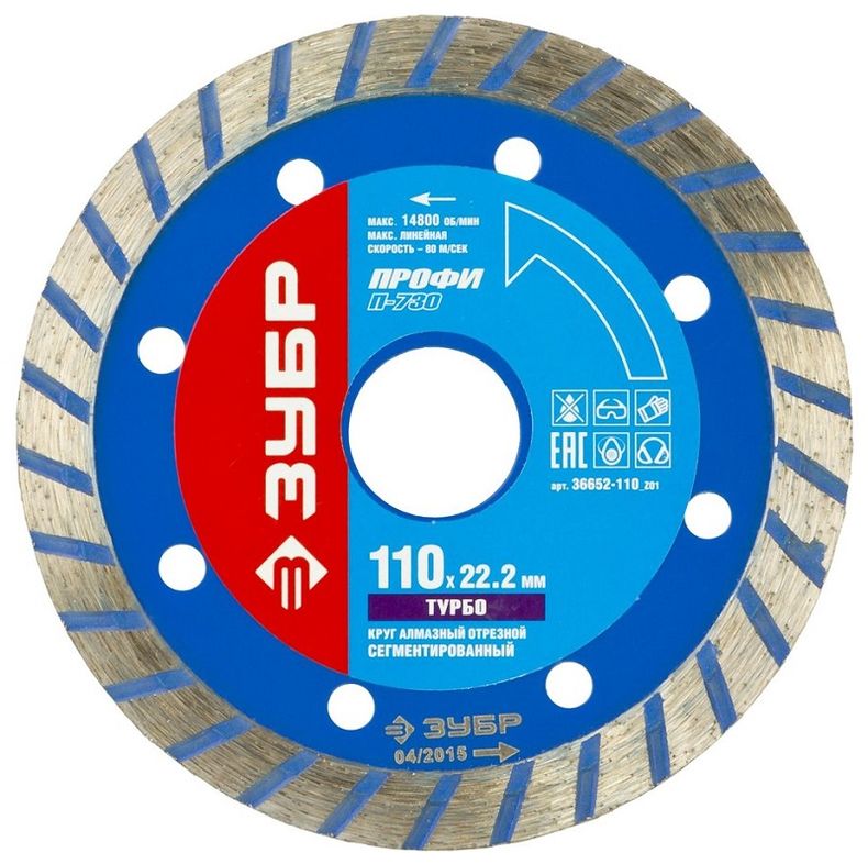 Диск (круг) алмазный 110*22 ЗУБР "ТУРБО" сегмент, сухая и влажная резка