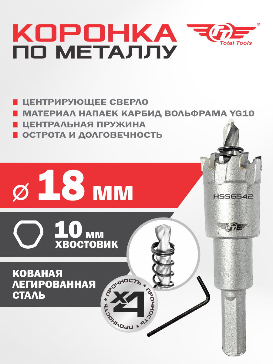 Коронка 18 мм по металлу победитовая ТТ
