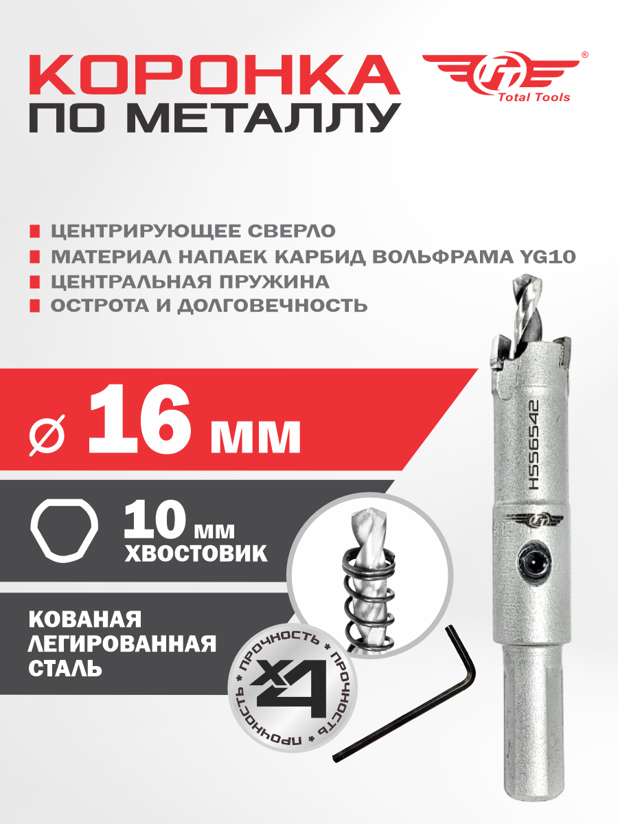 Коронка 16 мм по металлу победитовая ТТ