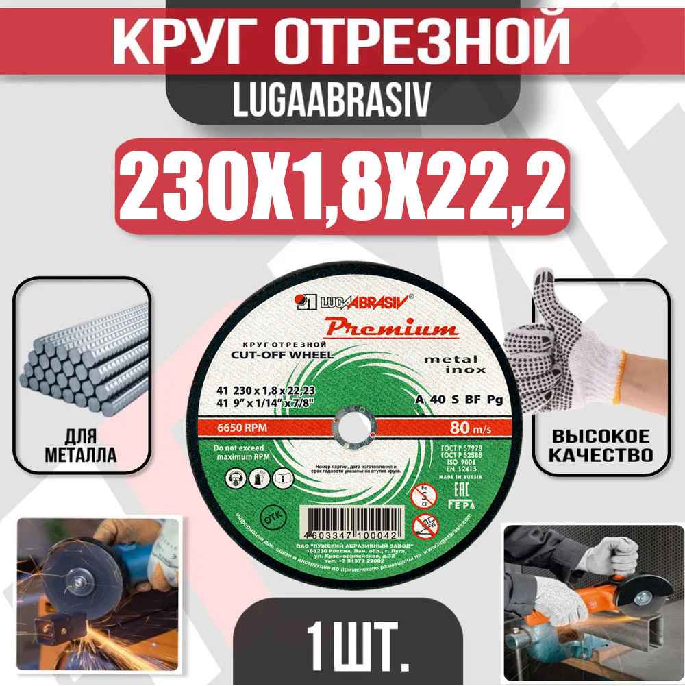 -Круг (диск) отрезной 230*1,8*22,2 Premium мет.+нерж.БурыДиски и круги алмазныеДиски пильныеКоронки и удлинителиЛопатки и пикиНожи и лезвияНожницыПлиткорезыПолотна для лобзиков и пилРезцы, развертки, сверла с КОНИЧЕСКИМ хвостовикомСверла ступенчатые по металлу, зенкерыСверла с ЦИЛИНДРИЧЕСКИМ хвостовиком (стандартные сверла)Сверла алмазныеСверла по бетонуСтеклорезыТруборезыЦепи и шины для цепных пил