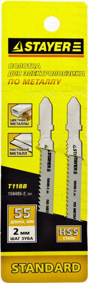 Полотно для эл/лобзика STAYER шаг 2,0мм, 55мм, по металлу