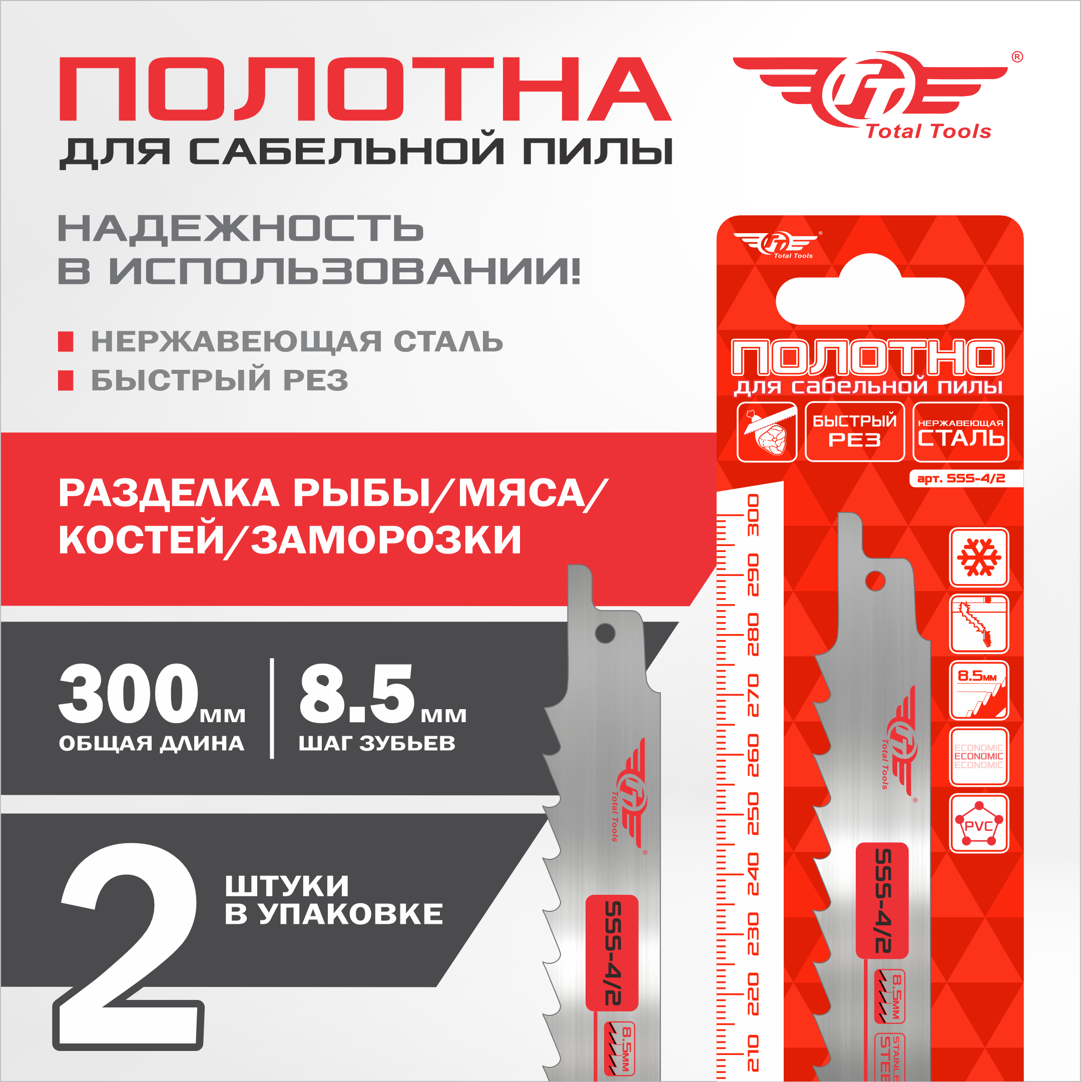 Полотно для мяса и костей TТ SSS-4/2 уп.2 шт