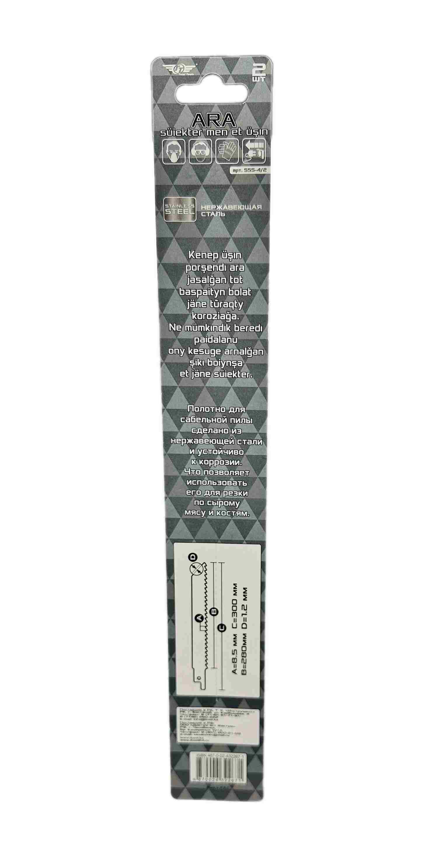 Полотно для сабельной пилы сделано из нержавеющей стали и устойчиво к коррозии. Что позволяет использовать его для резки по сырому мясу и костям. В комплекте 2 пилки.