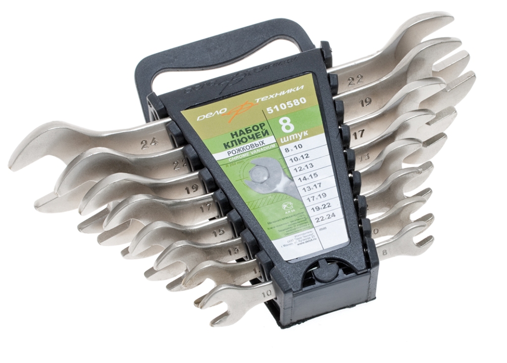 Ключи рожковые (мм): 8×10; 10×12; 12×13; 14×15; 13×17; 17×19; 19×22; 22×24