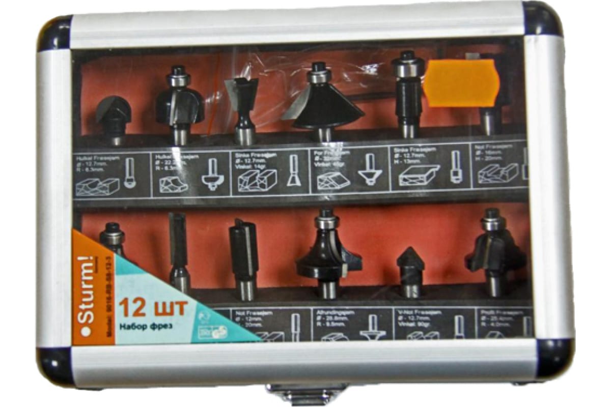 Набор фрез 12шт, в металлическом кейсе, Sturm
