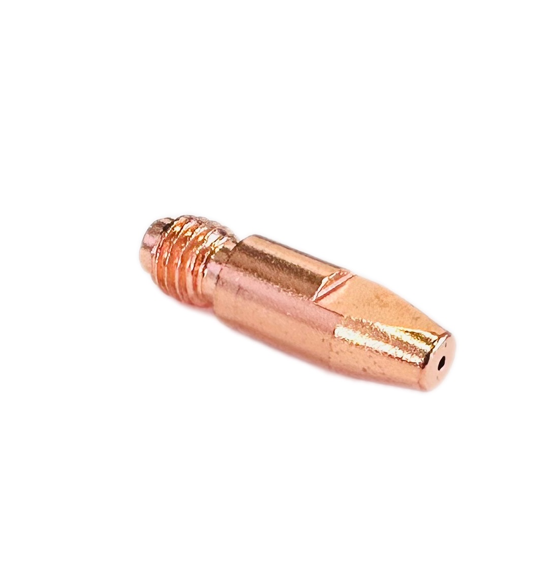 Наконечник изготовлен из медного сплава, используется для сварки стальной омедненной или порошковой проволокой. Накручивается на держатель наконечника (газораспределитель) при помощи резьбового соединения.