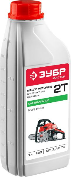 Масло моторное 1л. ЗУБР 2T двухтактное, минеральное